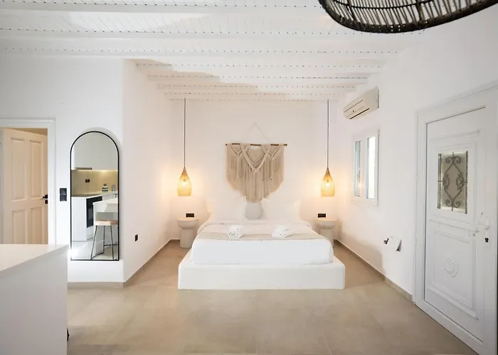 Konaklama tesisi Mykonos Town şehrinin kalbinden 30 dakika yürüme mesafesinde Ornos Plajı yakınında bulunmaktadır. Bu villa, Paranga Plajı'a 2,1 km uzaklıktadır. 450 metre uzaklıktaki Aperanto Galazio, misafirlere Akdeniz yemeklerini sunar. Küçük Venedik villanın bitişiğinde yer almaktadır.